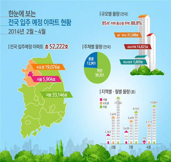 국토교통부는오는 2월부터 4월까지 전국의 아파트 입주예정 물량이작년 같은 시기보다 44.4% 증가한