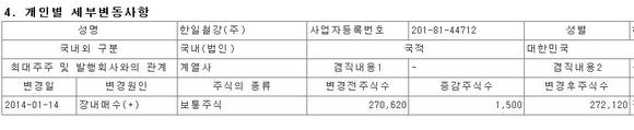 [공시]한일철강, 하이스틸 주식 취득