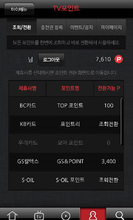앞으로 올레tv모바일 유료 콘텐츠를현금이 아닌 다양한 포인트로 결제할 수 있게 됐다.[KT미디어허브]는카드사 제휴 포인트로영화, 드라마, 교육 등2만 5,000여 편에 이르는유료 VOD 서비스를 결제할 수 있다고4일 밝혔다.올레tv모바일 결제에 적용되는제휴 포인트는 다음과 같다.카드사 ▲BC카드, KB카드, 우리카드정유사 ▲S-OIL, GS칼텍스기타 ▲문화상품권, 포인트파크, 컬쳐랜드, 해피머니포인트 결제는올레tv모바일 앱을 이용해카드사 포인트를 [TV포인트]로 전환 하면 된다.우선 최신 버전 올레tv모바일 앱의[마이메뉴]-[TV포인트] 메뉴에서TV포인트 회원에 가입한다.그런 다음 [조회/전환] 메뉴를 통해제휴포인트를 TV포인트로 바꾸면유료 콘텐츠를 포인트로 결제할 수 있다.