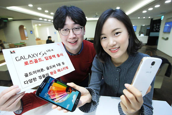 [KT]가 새로운 색상의갤럭시 S4 LTE-A 단말기 출시를 기념해[황금 페스티벌] 이벤트를 진행한다고5일 밝혔다.이번 KT가 출시하는 갤럭시S4 LTE-A 색상은로즈골드와 딥블랙으로로즈골드는 6일,딥블랙은 2월 중 출시 될 예정이다.이를 기념해 KT는[올레닷컴]에서 6일부터 28일까지 한 달간[갤럭시 S4 LTE-A],[갤럭시 S4],[갤럭시 노트3] 가입고객을 대상으로이벤트를 실시한다.먼저 5일부터[갤럭시 S4 LTE-A 로즈골드] 및[갤럭시 노트3 로즈골드] 가입고객 중선착순 2,014명에게[하우스오브말리] 골드 이어폰을 제공한다.또한 [갤럭시 S4 LTE-A],[갤럭시 S4],[갤럭시 노트3] 모든 색상 가입고객 중신청고객을 대상으로골드바 5돈,갤럭시 기어 로즈골드,황금장미,32GB USB 메모리 등총 1,115명에게 추첨을 통해 경품을 증정한다.마지막으로 [갤럭시 노트3] 와 [갤럭시 기어]를번들로 구매하는 모든 고객들에게삼성전자 정품 S뷰 커버를 증정한다.이번에 출시되는[갤럭시 S4 LTE-A 로즈골드]와[갤럭시 S4 LTE-A 딥블랙]은갤럭시 노트3에 최초로 적용했던 가죽 질감 및스티치 문양의 후면 커버가 적용됐다.기존 32GB였던 저장공간은16GB로 낮춰 가격도 내렸다."갤럭시 S4 LTE-A 로즈골드 출시로고객의 취향에 따라다양한 색상과 저장용량의갤럭시 S4 LTE-A 선택이 가능해졌다.KT는 앞으로도 고객의 선택권을 확대하도록 노력하겠다."-이현석 KT 무선단말담당 상무