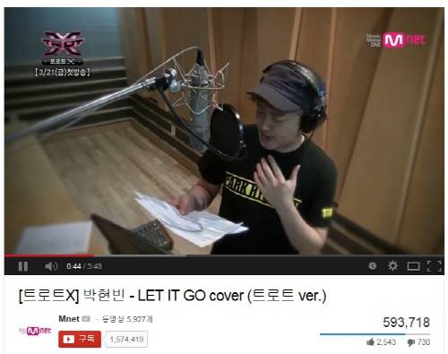 트로트 가수 박현빈의 ‘Let it go’(렛잇고) 영상이 단기간 유튜브 조회수 50만 건을 돌파하며 폭발적인 인기를 모으고 있다.지난 7일 Mnet <트로트 엑스>(트로트 X) 공식 유튜브 채널에는 트로듀서(트로트+프로듀서)로 합류하게 된 박현빈의 ‘Let it go’ 영상을 공개했다.공개된 영상 속 박현빈은 자신의 이름이 쓰여진 검은색 티셔츠를 입은 채 특유의 화려한 꺾기 창법과 구성진 목소리가 신명 나는 분위기를 만들어 원곡과는 다른 유쾌하면서 발랄한 느낌의 ‘Let it go’를 완성했다.이 영상은 공개된지 이틀 만에 조회수 50만 건을 돌파하며 트로트의 매력을 또 한번 알렸다. 이 영상으로 인해 해외 팬들에게도 뜨거운 반응을 보이며 트로트에 대한 관심을 모으고 있다.박현빈 ‘let it go(렛잇고)’ 영상을 접한 네티즌들은 “박현빈 let it go 조회수 50만 돌파 대단해”, “”, “박현빈 let it go 어깨가 들썩들썩~”, “트로트 불러서 이상할 줄 알았는데 생각한거랑 다르게 흥겹고 좋네요”, “박현빈 let it go 신선한데요?”, “중독성 강합니다” 등의 뜨거운 반응을 보였다.(박현빈 let it go, 사진=인우프로덕션)