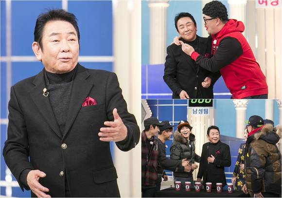 '가족오락관' 국민 MC 허참이 '1박2일' 애청자임을 인증했다.허참은 오는 16일 오후 방송될 KBS 2TV '해피선데이-1박2일 시즌3;'(이하1박2일)의 '서울 시간여행' 2편에서 멤버들의 환호를 들으며 등장해 변함없는 입담과 진행실력을 뽐냈다.'1박2일'은 사상 최초로 스튜디오 촬영을 진행한 만큼 그에 걸맞게 '가족오락관'의 영원한 MC 허참을 초대해 그 어느 때보다 활기찬 시간을 보냈다. 스튜디오에 들어선 멤버들은 어안이 벙벙한 상태로 완벽하게 재현된 '2014 가족오락관'에 놀라움을 금치 못했다. 이와 함께 허참의 등장에 멤버들은 입이 쩍 벌어졌고, 이내 90도 직각 인사는 물론 허참의 손을 잡으며 반가움을 드러냈다.허참은 "내가 보니까, 늘 굶는 사람은 늘 굶더라"면서 "그런데 (정)준영이는 운이 너무 좋은 친구더라~"라며 '1박2일'을 챙겨보는 애청자임을 드러냈다.이와 함께 허참은 '1박2일' 애청자 답게 남성팀과 여성팀으로 나누기 위해 진행된 '까나리 복불복'을 진두지휘하면서 "내가 섞었어. 까나리에 멸치액젓에 후추까지. 맛있어"라며 멤버들에게 혼란을 줘 큰 웃음을 선사했다.특히 공개된 사진 속에는 허참을 반기는 멤버들의 모습과 함께 허참의 볼에 뽀뽀를 하려는 데프콘의 모습이 포착돼 그 어느 때보다 훈훈한 분위기를 느낄 수 있어 이번 방송에 대한 기대감을 불러 모으고 있다.허참 '1박2일' 출연 사진을 접한 네티즌은 "와~ 진짜 오랜만이다", "허참 선생님! 완전 보고싶었다", "1박2일과 허참의 만남 신선한데~ 국민 MC 본방으로 꼭 볼게요!", "'1박2일 허참 출연 '가족오락관' 추억이 새록새록 돋아난다", "이번 방송도 기대할게요", 1박2일 허참 출연 완전 반가워" 등의 반응을 보였다.(1박2일 허참 출연, 사진=KBS)