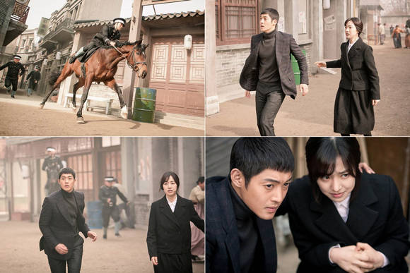 김현중과 진세연이 긴박하게 쫓기는 모습이 공개됐다.KBS 2TV 수목드라마 '감격시대:투신의 탄생'(극본 박계옥, 연출 김정규 안준용)의 김현중(정태 역)과 진세연(옥련 역)이 기마순사에게 쫓기고 있다. 급하게 몸을 숨긴 두 사람에게 과연 무슨 일이 벌어졌는지 궁금증을 증폭시킨다.사진 속 두 사람은 검은 색 정장을 갖춰 입고 있다. 아마도 '상하이의 매'라 불린 정태의 아버지 신영출(최재성)의 장례를 위한 것으로 보인다. 그런데 두 사람은 방삼통 큰길에서 느닷없이 기마를 탄 순사들에게 쫓기고 있다.당황한 옥련은 어리둥절해하는 정태와 함께 순사들을 피해 급히 몸을 숨긴다. 불안함과 초초함을 감출 수 없는 두 사람은 서로 가까이 붙어 숨을 죽이며 순사들이 지나가기만을 기다리고 있다. 과연 무슨 연유로 이 두 사람이 쫓기게 된 것인지 궁금증을 자아낸다.불운한 사건들이 겹치며 정태와 옥련은 헤어졌지만, 결국 상하이에서 다시 만났다. 그러나 헤어진 시간 동안 옥련은 자신을 찾지 않은 정태에 대한 서운함과 원망이 마음 한 구석에 자리잡았다.위기의 순간을 함께 넘기며 정태와 옥련은 다시 가까워질 수 있을지, 옥련의 마음은 다시 정태만을 바라보던 그 시절로 돌아 갈 수 있을지 관심을 모으고 있다.상하이에 입성하자마자 복잡한 사건들에 휘말리는 정태의 모습이 한 순간도 긴장감을 놓을 수 없게 만들며 이번 주 방송에 기대감을 높인다.제작사 레이앤모 관계자는 "방삼통을 두고 상하이 대전이라 할 수 있는 세력간 치열한 싸움이 시작된다. 치밀한 두뇌싸움과 격한 대결들이 시청자들의 심장을 뜨겁게 할 것"이라고 전했다.KBS 2TV 수목드라마 '감격시대' 11회는 19일 밤 10시에 방송된다.[감격시대 김현중 진세연, 사진=레이앤모]