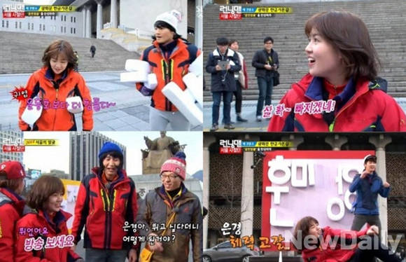 배우 심은경이 혹독한 예능 신고식을 치렀다.23일 방송된 SBS '일요일이 좋다-런닝맨'에는 심은경과 씨엔블루가 출연해 서울의 관광 명소들을 찾아 시민들과 다양한 게임 미션을 수행하는 '런닝 사절단'으로 도심 레이스를 펼쳤다.이날 심은경은 미션을 완성하기 위해 한글가온길에서 '훈민정음' 글자를 완성할 자음과 모음을 찾느라 여기저기 뛰어다녔다.특히, 이 과정에서 치열한 몸싸움이 일어났고, 심은경은 "이름 그대로 런닝맨이네요. 여기선 이미지 관리고 뭐고 없네. 운동회보다 더 힘들다. 살 확 빠지겠네"라며 한탄했다.급기야 심은경은 체력 고갈로 길바닥에 벌러덩 드러눕기까지 했다. 훈민정음 게임이 끝난 후 심은경에게 "뛰고 싶다고 하지 않았냐. 연재한테 얘기 듣고 왔다며?"라고 물었다.그러자 심은경은 "워밍업 시켜줘야 하는데 갑자기.. 예능이 이런 거구나"라고 답해 웃음을 자아냈다.[런닝맨 심은경, 사진=SBS 런닝맨 방송 캡처]
