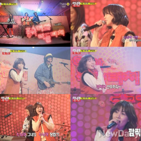 배우 심은경이 '나성에 가면'을 열창하며 뛰어난 노래실력을 뽐냈다.23일 방송된 SBS '일요일이 좋다-런닝맨'에는 심은경과 씨엔블루가 출연해 서울의 관광 명소들을 찾아 시민들과 다양한 게임 미션을 수행하는 '런닝 사절단'으로 도심 레이스를 펼쳤다.이날 심은경은 밴드 보컬로 깜짝 변신해 멤버들과 오프닝을 열었다. 심은경은 영화 '수상한 그녀'에서 불렀던 '나성에 가면'을 불러 이목을 집중시켰다.특히, 영화 속 할머니 의상을 그대로 입고 무대에 올라 고음도 무리 없이 소화해 보는 이들의 감탄을 자아냈다.심은경 런닝맨 '나성에 가면'을 접한 네티즌들은 "심은경 런닝맨 나성에 가면 정말 잘한다", "심은경 런닝맨 나성에 가면 어린 나이에 못하는 게 없네", "런닝맨 심은경 의외의 예능감", "심은경 노래실력 앨범 발표해도 되겠어", "심은경 런닝맨 나성에 가면 최고!" 등의 반응을 보였다.[심은경 런닝맨 나성에 가면, 사진=SBS '런닝맨' 방송 캡처]