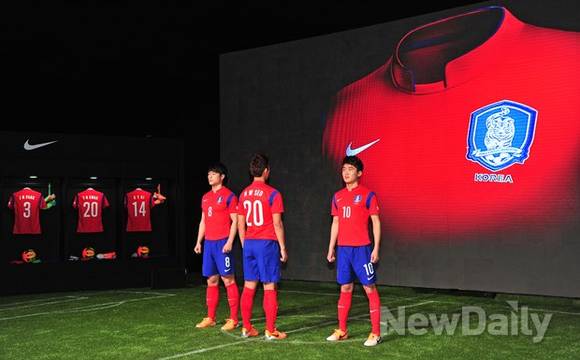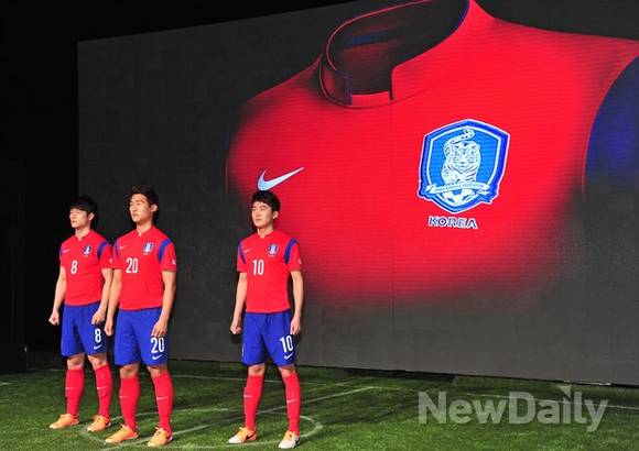대한축구협회와 나이키가 2014년 브라질 대회를 위한 축구 대표팀의 홈 유니폼을 지난 27일 광화문 광장에서 선보였다.