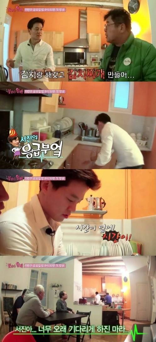 영상 속 이서진은 김치찌개를 끓이라는 백일섭의 지시에 당황한 모습을 보인다. 백일섭은 "저녁으로는 김치찌개를 끓여라", "삼겹살을 많이 넣어라"고 주문했고, 이에 이서진은 식사시간에 맞춰 요리를 끝내기 위해 고군분투했다.