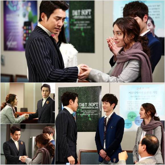 극중 차정우(주상욱)와 차정우 회사에 입사한 나애라(이민정), 우연으로 엮이게 되는 회사 동기 국승현(서강준)이 서로 다른 표정으로 대면하고 있는 장면. 무엇보다 나애라는 차정우와 악수하며 통쾌한 미소를, 차정우는 탐탁지 않은 듯 못마땅한 미소를, 국승현은 힘껏 박수를 치며 상큼한 미소를 자아내는 등 서로 다른 3색 미소를 선보여 궁금증을 더하고 있다.