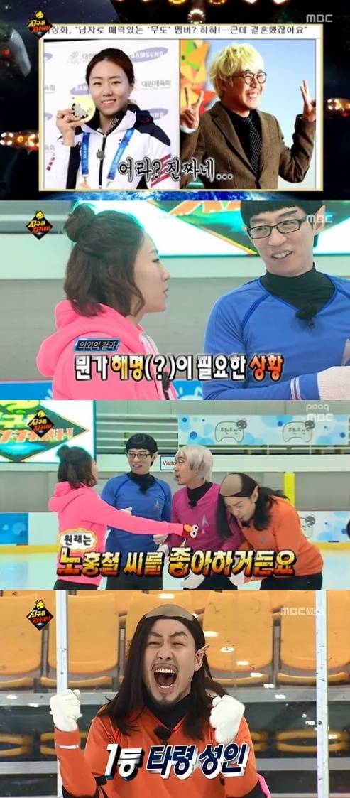 '무한도전'에 스피드 스케이팅 선수 이상화가 깜짝 등장했다.지난 15일 방송된 MBC '무한도전-지구를 지켜라' 특집에서는 빙속 여제 이상화와 제국의 아이들 박형식을 포함한 특별한 재능을 가진 지구인들이 출연해 '무한도전' 일곱 외계인들과 기상천외한 대결을 펼쳤다.이날 이상화 선수가 등장하자 '무한도전' 멤버들은 반가움을 금치 못했다. 특히, 유난히 기뻐한 하하는 이상화가 과거 자신을 '무한도전' 멤버 중 제일 좋다고 한 기사를 봤다고 자랑했다.이에 이상화는 "해명이 필요한 상황"이라며 "원래 노홍철 오빠를 좋아했었는데 그 당시에 너무 정신이 없어서 그냥 말하고 '유부남이시잖아요'라고 한 거다"고 밝혀 하하에게 굴욕을 안겼다.'무한도전' 이상화 등장에 네티즌들은 "무한도전 이상화 등장 시청자도 반가워", "이상화 노홍철이 이상형이라니 취향 독특해", "무한도전 이상화 출연 재밌더라", "하하 이상화에게 제대로 굴욕 당했네", "무한도전 이상화 예능감 살아있네!" 등의 반응을 보였다.이후에 진행된 이상형 월드컵에서 이상화는 노홍철을 1위로 꼽아 눈길을 끌었다.[무한도전 이상화 등장, 사진=MBC '무한도전' 방송 캡처]