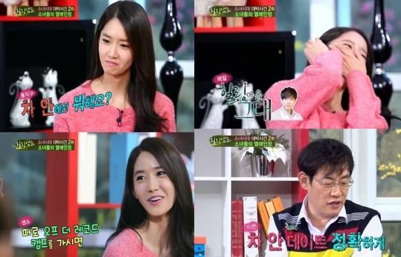 소녀시대 윤아가 공개 연애 중인 이승기와의 열애에 대해 '오프 더 레코드'로 일관했다.지난 17일 방송된 SBS '힐링캠프, 기쁘지 아니한가'(이하 힐링캠프)에서는 소녀시대 아홉 명 전원이 출연해 유쾌한 입암을 뽐냈다.이날 MC 이경규는 윤아에게 열애 보도 당시 공개된 파파라치 사진들을 언급하며 "편의점도 편하게 못간다던데.. 영화는 보냐? 차 안에서 뭐하느냐?"고 질문을 쏟아냈다.이에 윤아는 쑥스러운 웃음을 보이며 "그건 '오프 더 레코드' 캠프를 가면 설명해 드리겠다"고 재치있게 답했다.그러자 이경규는 "다음주에 이승기가 나온다. 그때 차에서 뭘 했는지 알아낼 것"이라고 강한 의지를 드러내 웃음을 자아냈다.한편, 윤아가 언급한 '오프 더 레코드'란 보도에서 제외해야 할 사항이나 제보자가 언론에 정보를 제공할 때 보도하거나 공표하지 않는다는 조건을 붙이는 것을 이르는 말이다.[힐링캠프 윤아 오프더레코드 발언, 사진=SBS '힐링캠프' 방송 캡처]