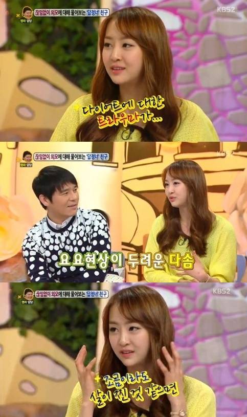 다솜이 다이어트 트라우마를 고백했다.지난 24일 방송된 KBS 2TV '대국민 토크쇼 안녕하세요'(이하 안녕하세요)에는 임창정, 백성현, 씨스타 다솜, 정주연이 출연해 솔직한 입담을 뽐냈다.이날 다솜은 "다이어트에 대한 트라우마가 있다"며 "조금이라도 살이 찌고 요요현상이 좀 온 것 같으면 신경이 쓰인다"고 밝혔다.이어 "조금이라도 살찐 것 같으면 주변 사람들에게 '나 살찐 것 같냐'고 끊임없이 물어본다. 살 안쪘다고 해도 '아니야, 살찐 것 같다'고 스스로 말한다. 몸무게가 1kg이라도 찌면 빠질 때까지 아무것도 먹지 않는다"고 말했다.다솜 다이어트 트라우마 고백을 접한 네티즌들은 "다솜 다이어트 트라우마 이해간다", "그러다 건강 해칠까 걱정돼", "다솜 다이어트 트라우마 지금도 충분히 예뻐요", "다솜 안쓰럽네", "다솜 다이어트 트라우마 걸그룹의 비애를 보는 듯" 등의 반응을 보였다.[다솜 다이어트 트라우마, 사진=KBS2 '안녕하세요' 방송 캡처]