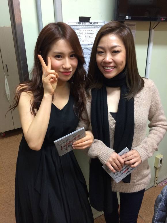 괴물신인 박수진이 디바 박정현을 만났다.박수진은 최근 자신의 트위터에 "이날 무대 뒤에서 선배님의 무대에 푹 빠져있다. 제가 2번째 순서 인 것도 잊고 있었어요! 늘 노래 동영상으로 찾아 봤던 박정현 선배님의 무대를 눈앞에서 보다니! 아직도 꿈만 같아요~"라는 글과 함께 한 장의 사진을 게재했다.공개된 사진에는 박정현과 박수진이 다정한 모습으로 카메라를 응시하고 있다. 특히, 두 사람은 팔짱을 끼며 마치 친자매를 연상케 하는 닮은꼴 미소로 눈길을 끌었다.'불후의 명곡' 박수진 박정현 인증샷을 본 네티즌들은 "정말 멋진 만남이네요", "불후의 명곡 최고 인증샷", "둘 다 예뻐요~", "박수진 박정현에 뒤지지 않은 실력자", "박정현 박수진 친자매처럼 닮은 듯", "보기만 해도 훈훈한 선후배" 등의 반응을 보였다.앞서 박수진은 지난달 29일 방영된 '불후의 명곡-전설을 노래하다' 이선희 편에서 '라일락이 질때'를 열창해 극찬을 받았다. 비록 박정현과의 경합에서 1승을 하지 못했지만, 방송 직후 연일 각종 포털사이트 실시간 검색어 1위에 오르며 뜨거운 반응을 얻었다.한편, 박수진은 지난 14일 첫 데뷔 싱글 '내 얘기야'를 발표했다.['불후의 명곡' 박수진 박정현 인증샷, 사진=박수진 트위터]