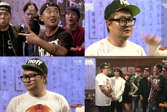 DJ DOC 이하늘이 정재용의 사생활을 폭로했다.이하늘 정재용은 지난 5일 방송된 tvN 'SNL 코리아'의 '래퍼선생' 편에서 유세윤, 박재범, 로꼬와 함께 랩 배틀을 펼쳤다.이날 유세윤은 박재범과 로꼬에게 선배들의 랩 실력을 보여주겠다면서 이하늘 정재용의 랩 배틀을 주선했다.이에 이하늘과 정재용은 서로를 디스해 웃음을 자아냈다. 이하늘은 정재용을 향해 "이건 논픽션 리얼 스토리"라고 강조한 후 "재용이 작년에 나르샤에게 들이댔다 까였다"고 밝혔다.이어 "그날 밤 우울해서 클럽 갔다가 클라라한테 또 까였지"라며 "이건 기자를 위한 떡밥. 재용이 신지한테도 들이댔다가 까였지. 숙소에서 신지 사진 들고 화장실 가는 거 봤지"라고 폭로해 정재용을 당황케 했다.또한, 정재용은 '피플업데이트'에서 나르샤에 대해 묻자 "여자친구가 방송을 보고 있을텐데.. 지난 일이다"고 쿨하게 대응했다.[사진=tvN 'SNL 코리아' 캡처]