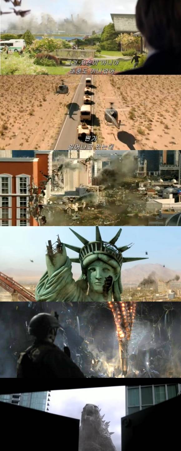 예고편을 통해 존재감을 드러낸 '고질라'의 실체는 상상을 초월하는 크기와 엄청난 파괴력으로 재난 블록버스터의 진면목을 확인시켜준다. 초토화된 도심의 전경과 더불어 미국의 상징이라 할 수 있는 자유의 여신상의 붕괴부터 충격을 자아낸다.