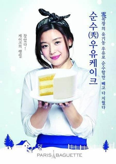 파리바게뜨 모델 전지현이 광고하는 '순수(秀) 우유케이크'가 출시 2주 만에 매출 10억원을 돌파했다.16일 파리바게뜨에 따르면 '순수 우유케이크'는 파리바게트 매장에서 판매하는 70여종의 케이크 가운데 판매 1순위에 올랐다. 2004년 치즈케이크가 고구마케이크를 제치고 1위가 된 이후 10년 만에 1위가 바뀐 것이다.2주동안 팔린 '순수 우유케이크'의 판매량은 일반 케이크의 3배를 훌쩍 넘었다.해당 제품은 기존 우유 케이크에 비해 우유 함량이 60% 높아 부드럽고 촉촉한 맛이 강조됐다. 국내 유기농 목장 1호인 설목장의 우유를 사용한 것도 특징이다.특히 '순수 우유케이크'는 배우 전지현이 광고하며 단기간에 제품 매출이 상승한 요인으로 거론된다. 소비자들은 '전지현 케이크 주세요'라고 말할 정도로 '전지현=순수 우유케이크'라는 인식이 자리잡고 있다.