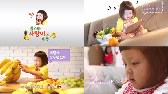 추사랑의 광고 촬영 현장이 포착됐다.세계적인 청과 브랜드 한국델몬트후레쉬프로듀스는 델몬트 공식 페이스북과 블로그를 통해 '톱스타 사랑이의 하루' 영상을 공개했다.델몬트는 지난 3월부터 추사랑 광고 촬영 현장의 다양한 뒷이야기를 담은 메이킹 필름을 델몬트 공식 페이스북과 블로그를 통해 선보이고 있다. 해당 영상에는 추사랑이 바나나, 포도를 맛있게 먹는 장면과 애교 있는 모습이 담겨있어 뜨거운 인기몰이 중이다.이번에 공개된 '톱스타 사랑이의 하루' 영상은 어린 나이에도 불구하고 촬영 콘셉트를 검토하고, 촬영 현장의 과일 소품이 흐트러져있는 모습을 정리하는 등 전문 모델다운 모습을 보이는 추사랑의 귀여운 모습들이 담겨 있다. 뿐만 아니라 촬영 도중 틈틈이 자신의 사진을 모니터링까지 하는 등 열정적인 모습으로 촬영을 하는 면모를 엿볼 수 있어 더욱 눈길을 끈다.추사랑의 애교 가득한 영상을 본 네티즌들은 "사랑이 이제 엄마보다 더 전문 모델 같다", "추사랑만큼 상큼한 과일을 대표하는 모델은 없는 듯", "추사랑 제주도 한라봉 먹방보다 더 먹음직스러워" 등의 반응을 보였다.[추사랑, 사진=한국델몬트후레쉬프로듀스]