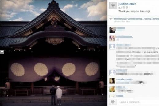 저스틴 비버는 팬들로부터 "당장 사진을 삭제하고 사과해라", "제 정신이냐?" 등의 질타를 받자 야스쿠니 신사 참배 사진을 내렸다.