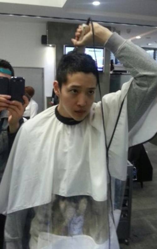 공개된 사진 속 강동호는 영화 '아저씨' 원빈을 패러디한 듯 거울 앞에서 머리를 깎는 모습을 연출했다. 이는 자신의 군 입대를 아쉬워하는 팬들에게 마지막까지 밝은 모습을 보여 주고자 한 것.