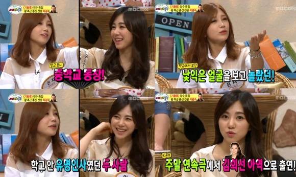 걸그룹 에이핑크 정은지와 AOA 민아가 중학교 동창이라는 사실이 공개됐다.정은지는 지난 3일 방송된 MBC '세상을 바꾸는 퀴즈-세바퀴'에 출연해 "AOA 민아와 중학교 동창이다"고 깜짝 고백했다.이날 민아가 부산 출신임을 밝히며 정은지와의 친분을 언급하자 정은지는 "나랑 중학교 동창이다"라며 "학교 다닐 때부터 얼굴이 예쁜 걸로 유명했다"고 칭찬했다.민아 역시 정은지에 대해 "학교에서 노래 잘하는 친구라고 소문이 나 알고 있었다. 그런데 연기까지 잘 할 줄 몰랐다"고 말하며 훈훈한 분위기를 이어갔다.또한, 정은지는 "예전에 '아이돌 육상 양궁 풋살 컬링 선수권대회'에서 처음 봤는데 학교에서 봤던 얼굴이 촬영장에 있어서 놀랐다"고 전했다.[정은지 민아 동창, 사진=MBC' 세바퀴' 방송 캡처]