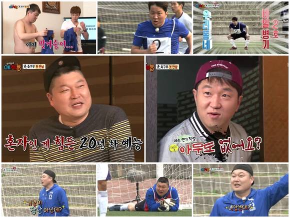 강호동과 정형돈이 첫 만남부터 시청자들의 마음을 훔칠 '우리동네 예체능' 케미를 만들어냈다.지난 6일 방송된 KBS 2TV '우리동네 예체능'에서는 '예체능' 축구부 10인의 위풍당당한 축구부 결성기와 함께 강호동과 정형돈의 첫 만남이 다양한 에피소드를 그려내며 안방극장에 웃음 폭탄을 선사했다.강호동과 정형돈은 어색한 분위기도 예능으로 승화시키는 노련한 진행을 선보였고, 경기에서는 에너지 넘치는 투지와 몸을 사리지 않는 웃음을 양분하며 시너지를 만들었다. 이에 따라 '우리동네 예체능' 전국 시청률은 지난 회보다 1.5%P나 상승한 5.7%(닐슨 코리아 전국기준)를 기록하며 동시간대 1위 자리를 차지했다.이날 만남의 장소에 도착한 강호동. 새로 합류하는 정형돈을 위해 시나리오에서 변장까지 손수 몰래 카메라를 준비하며 남다른 애정을 보였다. 이어 강호동의 몰래 카메라에 꼼짝없이 당한 정형돈은 "호동이 형과 하는 고정 프로는 처음이다. 세 번밖에 일을 안 해봤다"면서 어색한 미소를 지었다. 강호동 역시 "(정형돈의 합류를) 기사로 봤다"고 말하면서도 남다른 설렘을 드러내며 향후 이들이 만들어나갈 이야기에 기대감을 높였다.특히, 조우종과 함께 강호동이 소치 동계올림픽에 대한 이야기꽃을 피우자 정형돈은 대뜸 "저는 전혀 안 반가웠어요?"라고 말하며 은근한 질투심을 내비쳐 웃음을 자아냈다. 뿐만 아니라 정형돈은 자신의 비루한 몸매 노출도 서슴지 않은 과감한 매력을 펼치며 자신의 존재감을 입증했다.강호동은 "주장은 사투리 쓰면 안 되겠다"면서 '온나~ 온나~'라며 말장난 치는 정형돈에게 허허실실 웃음으로 답하는 등 두 사람이 만들어가는 웃음은 '예체능' 곳곳에서 싹을 피웠고, 두 사람의 조화 역시 시간이 흐를수록 톱니바퀴처럼 맞물려갔다.'예체능' 축구편 방송을 접한 네티즌들은 "빅호동과 스몰형돈의 조화 남다른 케미던 걸~", "정형돈 투입은 신의 한 수인 듯", "정형돈 투입되니 확실히 웃음이 두 배로 늘었다 강호동 정형돈 기대되네", "강호동과 정형돈 이 커플도 참 좋다" 등의 반응을 보였다.['예체능 축구편' 강호동 정형돈, 사진=KBS2 '우리동네 예체능']