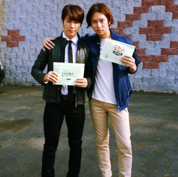 슈퍼주니어 김희철과 동해의 다정한 대본 인증샷이 포착됐다.김희철은 지난 1일 오후 자신의 인스타그램을 통해 "꽃할배 수사대 오늘 촬영을 마치고 '신의 퀴즈 4' 촬영하고 있는 내 동생 이동해를 찾아갔다. 뭐, 딱히 응원이나 보고 싶어서 간 건 아니고 그냥 대충 여기다 올릴 사진이나 찍으러 갔다. 사랑한다 내동해"라는 글과 함게 한 장의 사진을 올렸다.공개된 사진 속에는 김희철 동해가 나란히 서서 각각 '꽃할배 수사대'과 '신의 퀴즈4' 대본을 들고 포즈를 취하고 있다. 김희철은 동해의 어깨에 손을 올린 채 다소 시크한 표정을 짓고 있어 눈길을 근다.김희철은 tvN '꽃할배수사대'에서 엄친아 형사 박정우 역으로 등장하며, 동해는 OCN 드라마 '신의 퀴즈4'에서 한국대학병원 법의관 사무소의 한시우 역을 맡아 첫 방송을 앞두고 있다.한편, tvN 금토드라마 '꽃할배수사대'는 20대 풋풋한 꽃미남에서 하루아침에 70대 할아버지로 변한 젊은 형사들이 원래의 몸으로 회춘하기 위해 고군분투하는 회춘누아르 드라마. 매주 금요일 오후 9시 50분 방송된다.[꽃할배수사대 김희철, 사진=김희철 인스타그램]