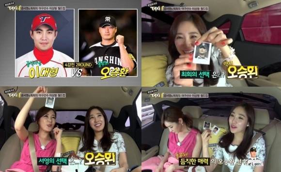 공서영과 최희가 배우 김규리와 열애설이 불거진 야구선수 오승환을 최고의 신랑감으로 꼽았다.지난 15일 방송된 tvN '현장토크쇼 택시'에는 공서영과 최희가 출연해 야구선수를 대상으로 '이상형 월드컵'을 진행했다.이날 최희는 이대형과 오승환 중 오승환을 선택하며 "내 이상형에 가깝다"고 밝혔다. 최희 역시 오승환을 꼽으며 "사실 언니(공서영)와 안 겹치려고 오승환 선수를 고른 것도 있다. 팬이다"고 밝혔다.이어 최희는 "오승환은 인기가 정말 많다. 몸통도 두껍고 실제로 보면 '저게 사람 몸이야?'라는 생각이 들 정도다"고 극찬했다.공서영은 오승환 선수에 대해 "최고의 신랑감이다. 온 몸이 쇠 같다"라며 엄지손가락을 들어올렸다.또한, 최희는 "오승환은 듬직하다. 마운드에 오르면 아무도 그날 경기를 의심하지 않는 지켜준다는 믿음이 있다. 신뢰감이 가득한 느낌이다"고 설명했다.한편, 16일 한 매체는 야구선수 오승환과 배우 김규리가 3개월째 핑크빛 열애 중이라 보도했다.[공서영 최희 이상형 오승환, 사진=tvN '택시' 방송 캡처]
