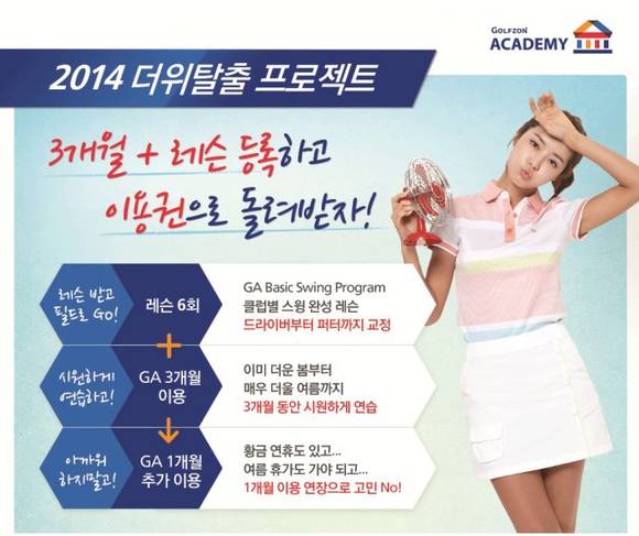 토털골프문화기업 ㈜골프존의 신개념 골프연습장 골프존 아카데미에서 오는 31일까지 '2014 더위탈출 프로젝트 3+1' 이벤트를 실시한다.