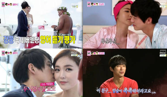 남궁민 홍진영이 볼뽀뽀에 성공했다.지난 24일 방송된 MBC '우리 결혼했어요 시즌4'(이하 '우결')에서는 남궁민 홍진영의 사이판 결혼식과 첫날밤이 전파를 탔다.이날 남궁민 홍진영은 사이판에서 요트 결혼식을 올렸다. 특히, 남궁민은 홍진영의 볼에 입술을 살짝 갖다 대며 달달한 모습를 연출했다.이후 첫날밤 커플 잠옷으로 갈아 입은 남궁민 홍진영은 셀카를 찍으며 알콩달콩한 분위기를 이어갔다.남궁민은 털 세우기에 이어 마지막으로 하나 남은 소원권을 자신의 볼을 가리키며 "뽀뽀해주기"라고 밝혔다. 이에 홍진영은 남궁민의 볼에 수줍게 뽀뽀를 했다.남궁민은 제작진과의 인터뷰에서 "결혼식 때 주례 선생님이 키스하라고 했다. 그때 할 때는 정신이 없어 느낌을 느낄 수 없었는데 여기서 할 때는 이 친구 입술이 촉촉하더라"고 소감을 전했다.[남궁민 홍진영, 사진=MBC '우리 결혼했어요' 방송 캡처]