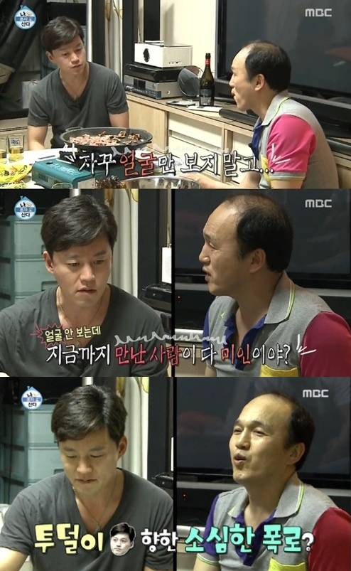 '나 혼자 산다' 김광규에게 의미심장한 말을 남겻다.지난 30일 방송된 MBC '나 혼자 산다'에서는 김광규의 집들이에 초대된 이서진, 류승수, 옥택연의 모습이 전파를 탔다.이날 이서진은 결혼을 고민하는 김광규에게 "얼굴 좀 보지 말라"고 타박했고, 류승수는 "얼굴만 보지는 않아. 몸매도 보더라"고 밝혔다.이어 김광규가 "얼굴, 몸매 안 보는 남자가 어디 있냐"고 발끈하자 이서진은 "난 얼굴은 잘 안 봐"라고 당당하게 말했다.이서진의 말에 욱한 김광규는 "얼굴 안 보는데 지금까지 만난 사람이 다 미인이냐"고 폭로했다. 이에 이서진은 "폭로 시작하냐?"고 응수했고, 김광규는 "니다. 이름 안 댔잖냐"라며 바로 꼬리를 내려 웃음을 자아냈다.[나혼자산다 김광규 이서진 폭로, 사진=MBC '나 혼자 산다' 방송 캡처]