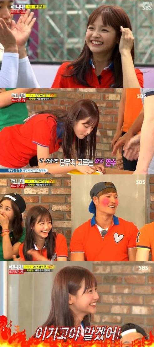 '런닝맨'에 출연한 배우 하연수가 첫 예능임에도 열정 가득한 모습으로 안방극장을 사로잡았다.하연수는 지난 1일 방송된 SBS '일요일이 좋다-런닝맨'에 출연해 작은 얼굴과 상큼한 미소로 시청자들의 눈도장을 찍었다.이날 하연수는 촬영하는 내내 미소를 잃지 않는 환한 모습으로 화기애애한 분위기를 이끌었고, 예능에 대한 남다른 열정을 드러냈다.하연수는 '런닝맨' 멤버 김종국과 짝을 이뤄 '절대사랑 커플 레이스'를 펼쳤다. '러브 이즈 핫'이란 단무지 빼빼로 게임을 하게 된 하연수는 상대편인 박서준-송지효가 너무 짧은 단무지로 승리를 점치고 있는 상황에서도 우승에 대한 의지를 불태워 눈길을 끌었다.하연수는 직접 단무지를 고르며 게임에 적극 참여했고, 김종국을 과감히 리드하며 "오케이 할 때까지 절대 끊지 말라"라는 당부로 멤버들과 게스트들의 폭소를 자아냈다. 이에 '열정의 연수'란 자막이 떴고, 결국 박서준 송지효보다 짧은 단무지 길이로 승리를 거머쥐었다.이처럼 첫 예능 프로그램에서 불타는 열정으로 팀의 승리를 이끈 하연수는 작은 얼굴에 가녀린 체형이라고는 도저히 믿을 수 없는 반전의 모습을 보여주며 시청자들의 뜨거운 호응을 불러일으켰다.['런닝맨' 하연수, 사진=SBS '런닝맨' 방송 캡처]