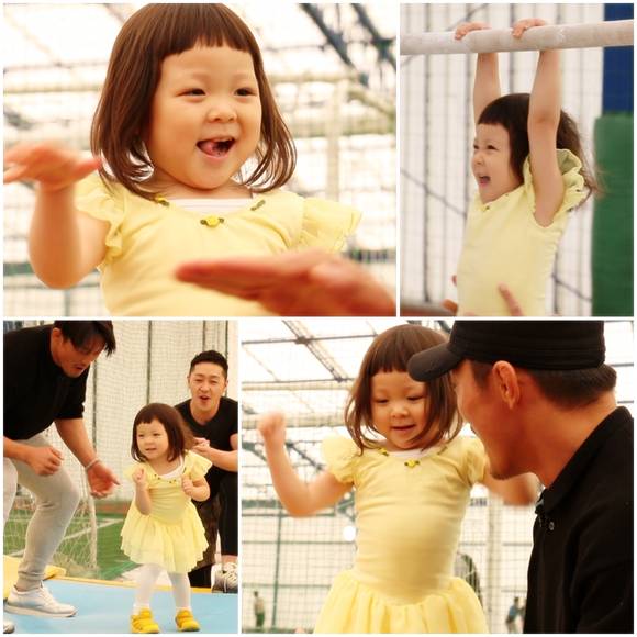 이어 철봉에 도전한 사랑이는 낮은 철봉에 거뜬히 매달리더니, "좀 더 높은 거~"라고 말하며 탁월한 운동능력과 승부욕을 유감없이 발휘했다. 잔뜩 흥이 난 사랑이는 아빠가 틀어준 음악에 맞춰 정체불명의 막춤으로 넘치는 끼를 보여주며, 앙증맞은 비주얼과 탁월한 체력 거기에 끼까지 3박자를 완벽히 갖춘 '차세대 체조 요정'의 탄생을 알렸다는 전언이다.