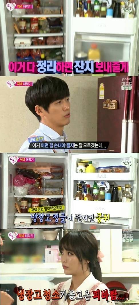 '우결' 남궁민 홍진영이 첫 부부싸움의 위기를 간신히 넘겼다.지난 7일 방송된 MBC '우리 결혼했어요-시즌4'(이하 '우결')에서는 신혼집 입주기념 첫 식사를 위해 남궁민 홍진영 커플이 저녁을 준비하는 모습이 그려졌다.이날 홍진영은 자신을 도와주기 위해 부엌으로 온 남궁민에게 냉장고 정리를 부탁했다. 하지만 홍진영 집 냉장고에는 음식들로 가득했고, 남궁민은 "이거 어떤 걸 손대야 될지 잘 모르겠다"며 난감해하는 모습을 보였다.홍진영은 혀짧은 소리를 섞어가며 남궁민에게 "한 번 해보라"고 재촉했고, 남궁민은 "아무거나 다 뺄 순 없잖아. 냉장고 정리는 아무래도 못하겠다"고 포기했다.두 사람은 냉장고 청소를 두고 계속 실랑이를 벌이더니 급기야 남궁민은 "나 냉장고 정리하기 싫어"라고 소리를 질렀다.이에 홍진영은 "나한테 지금 화내는 거냐"며 첫 부부싸움을 할 조짐을 보였다. 하지만 다행히 홍진영의 애교에 남궁민은 마음을 가다듬고 분위기 전환에 나섰다.이후 남궁민은 제작진과의 인터뷰에서 "처음에는 자기가 다 알아서 해준다고 하더니 계속해서 뭘 시키더라. 뭔가 함정에 빠진 것 같은 느낌이었다"면서 "살다살다 그런 냉장고는 처음 봤다. 그냥 싹 다 비워버릴 걸.."이라고 말했다.[우결 남궁민 홍진영, 사진=MBC '우리 결혼했어요' 방송 캡처]