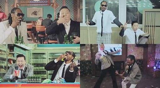 공개된 싸이 '행오버' 뮤비에는 제목에 걸맞게 한국 스타일의 음주문화인 '소주잔 돌려 마시기'를 하는 싸이와 스눕독의 모습이 담겨 있다. 또 사우나, 당구장, 노래방 등에서 싸이와 스눕독이 함께한 코믹한 장면들은 보는 이들의 웃음을 자아낸다.