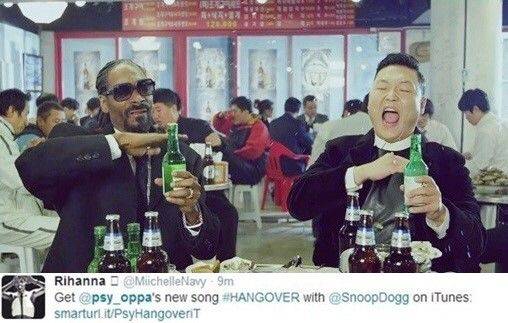 미국의 팝스타 리한나가 싸이의 신곡 '행오버' 음원을 구입했다.리한나는 9일(한국 시간) 자신의 트위터에 "스눕독과 함께 부른 싸이의 '행오버’를 아이튠즈에서 구입했다. (Get @psy_oppa‘s new song #HANGOVER with @SnoopDogg on iTunes)"라는 글을 남겼다.싸이 '행오버' 음원은 미국 동부시간 기준 6월 9일 0시(한국 시간 6월 9일 오후 1시) 미국 및 전세계 아이튠스를 통해 독점으로 공개됐다.앞서 싸이의 소속사 YG엔터테인먼트 측은 "해외 프로모션을 더욱 효율적으로 펼치기 위해 아이튠즈와 독점 계약했다"고 밝혔다.싸이 '행오버'는 힙합스타일을 전면에 내세우면서도 곡 중간 꽹가리, 장구, 징 등 국악기를 사용한 멜로디를 더해 한국적인 색깔을 배치, 곡의 개성을 살렸다.[사진=싸이 '행오버' 뮤직비디오, 리한나 트위터 캡처]