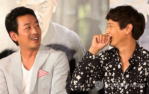 '군도' 하정우 강동원이 함께 연기 호흡을 맞춘 소감을 밝혔다.10일 오전 서울 삼성동 코엑스 메가박스에서 열린 영화 '군도: 민란의 시대' 제작발표회에는 윤종빈 감독을 비롯해 배우 하정우, 강동원, 이성민, 조진웅, 마동석, 윤지혜, 정만식, 김성균, 김재영 등이 참석했다.이날 강동원은 하정우와의 호흡에 대해 "일단 현장에서 너무 웃겼다. 그냥 눈만 마주쳐도 웃었다"고 밝히며 웃음을 터뜨렸다.이에 하정우는 "내가 워낙 재밌는 상황이나 분위기를 좋아한다. 다른 배우들과 친분도 있었고 좋았기 때문에 내 개그가 발휘되지 않았나 생각한다. 강동원도 내 개그 패턴을 잘 이해해줘서 신뢰감을 갖고 편안하게 개그를 주고받았다"고 너스레를 떨었다.한편, 하정우 강동원 주연에 '범죄와의 전쟁' 윤종빈 감독이 메가폰을 잡은 '군도:민란의 시대'는 양반과 탐관오리들의 착취가 극에 달했던 조선 철종 10년, 백성 편에 서고자 했던 도적들의 종횡무진 활약상을 그린다. 오는 7월 23일 개봉한다.['군도' 하정우 강동원, 사진=연합뉴스]