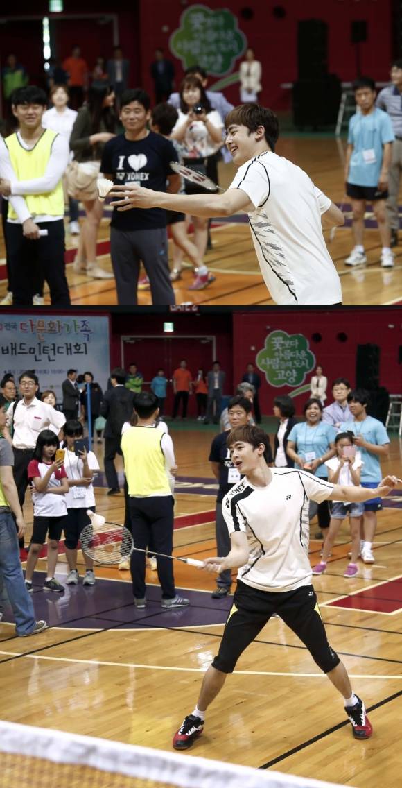닉쿤이 배드민턴 시타로 남다른 실력을 뽐냈다.국내 거주하는 다문화가족들이 배드민턴으로 소통하고 화합하는 '2014 전국 다문화가족 배드민턴대회'가 14일 경기도 고양시 고양체육관에서 열렸다.이 대회에는 서울, 경기, 강원, 충청, 전라, 경상 등 전국 각지의 다문화가족 269가구와 다문화가족지원센터 종사자를 포함해 717명이 참가했다. 2010년 시작돼 5회째를 맞은 이 대회는 해를 거듭할수록 인기를 더해 올해 참가자들이 지난해보다 200명 가까이 늘어나 역대 최대 규모로 치러졌다.이날 대회에는 인기그룹 2PM 멤버 닉쿤이 특별히 참석해 다문화가정 청소년과 시타를 하고, 팬 사인회를 진행했다. 유명 스포츠브랜드 요넥스코리아의 모델로 학창시절 배드민턴 선수를 한 닉쿤은 뛰어난 배드민턴 실력으로 다문화가족들로부터 박수를 받았다.닉쿤 배드민턴 시타를 접한 네티즌들은 "닉쿤 배드민턴 시타 화보 같아", "배드민턴 치는 코트의 남신이 따로 없네", "닉쿤 배드민턴 시타 정말 멋지다", "닉쿤 못하는 게 뭐야?", "닉쿤 배드민턴 시타 역시 선수 출신다워" 등의 반응을 보였다.[닉쿤 배드민턴 시타, 사진=미디컴]
