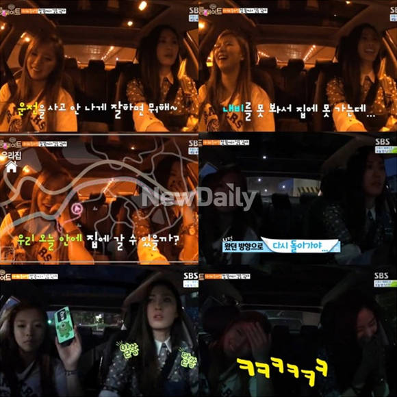 '룸메이트' 나나가 허당 운전실력을 드러냈다.15일 방송된 SBS '일요일이 좋다-룸메이트'에서는 나나와 송가연이 팥빙수를 만드는 기계를 사기 위해 마트로 향하는 모습이 그려졌다.이날 운전대를 잡은 '룸메이트' 나나는 송가연과 장보기를 마치고 집으로 돌아오는 길에 내비게이션의 안내를 듣고도 계속 헤맸다.나나는 집과 5분 거리인 근처까지 갔다가 길을 잘못 들어 다른 곳으로 갔다. 유턴 후 다시 제자리로 돌아와 운전을 한 나나는 다른 길을 잘못 찾아 또 유턴을 해야하는 상황에 직면했다.멘붕에 빠진 '룸메이트' 나나는 "내가 흠이 하나 있네. 운전을 잘하면 뭐하나. 네비게이션을 보지 못하는데.."라며 셀프 디스해 웃음을 자아냈다. 송가연 역시 "우리 오늘 안에 집에 갈 수 있는 거냐"며 불안한 마음을 드러냇다.집에서 나나와 송가연을 기다리던 멤버들은 이들이 돌아오지 않자 걱정하기 시작했다. 홍수현은 송가연에게 전화를 걸어 어디냐고 물었고, 송가연은 "길을 잘못 들었다"고 답했다.결국 '룸메이트' 나나와 송가연은 10분 거리를 무려 4시간을 돌고 돌아 집에 도착했다. 집에 돌아온 두 사람은 서로를 끌어안고 안도의 한숨을 쉬는가 하면, 집에 들어서자마자 화장실로 직행해 웃음을 자아냈다.[룸메이트 나나 운전실력, 사진=SBS '룸메이트' 방송 캡처]