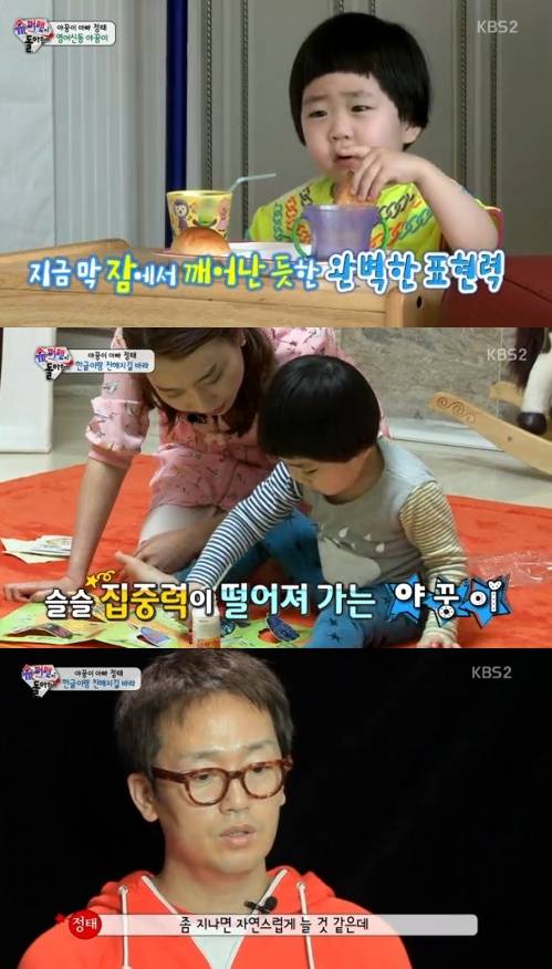 배우 김정태 야꿍이(김지후) 부자가 별다른 인사 없이 조용히 하차했다.지난 15일 방송된 KBS 2TV '해피선데이-슈퍼맨이 돌아왔다'에서는 다섯 가족들의 특별한 만남을 담은 '친해지길 바라' 편이 전파를 탔다.이날 방송에서는 여느 때와 같이 김정태와 아내 전여진, 야꿍이의 평범한 일상이 그려졌다. 특히, 마지막을 알리는 자막이나 인사도 없이 '슈퍼맨이 돌아왔다'에서 하차해 시청자들의 아쉬움을 샀다.야꿍이 하차에 네티즌들은 "야꿍이 하차 왠지 씁쓸하다", "귀여운 야꿍이 못 본다니 아쉬움이 더 크다", "야꿍이 하차 평소와 같은 일상이라 생각지도 못했다", "김정태 야꿍이 부자 그리울 듯", "야꿍이 하차 너무했어~" 등의 반응을 보였다.한편, 김정태 야꿍이 부자는 6.4 지방선거 전 새누리당 나동연 경남 양산 시장의 선거 유세 현장에 나섰다는 의혹을 받으며 논란에 휩싸였다. 논란이 계속되자 김정태는 제작진 측에 자진하차 뜻을 밝혔다.[야꿍이 하차, 사진=KBS2 '슈퍼맨이 돌아왔다' 방송 캡처]