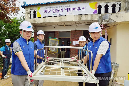 삼성에버랜드는 17일 사업장이 있는 경기도 용인에서 저소득층 주거환경 개선을 위한 희망의 집 고치기 사업 일명 '에버하우스'를 시작했다.삼성에버랜드는 처인구 포곡읍 정모(43)씨 집에서 김봉영 사장, 유태환 한국해비타트 대표, 새누리당 이우현 국회의원(용인갑)과 임직원 40여명이 참여한 가운데 올해 첫 번째 주택 리모델링사업을 했다.정씨 가족은 교통사고로 거동이 불편한 노부모, 뇌성마비를 앓는 둘째 아들 등 7명이 27년 된 낡은 주택에서 함께 생활하느라 매우 어려움을 겪고 있었다.임직원들은 무너져 가는 벽체를 보수하고 깨진 유리창을 바꾸는 한편 단열을 강화해 다가올 무더위와 겨울 추위를 잘 견딜 수 있도록 했다.또 찌든 때와 곰팡이 등으로 뒤덮여 있던 욕실과 주방을 완전히 개조해 위생 문제까지 말끔히 해결했다.에버랜드는 올해 한국해비타트와 공동으로 포곡읍의 추천을 받아 아동복지시설 3곳을 포함, 모두 14가정을 선정해 낡고 불량한 주택을 산뜻하게 개선할 예정이다.김봉영 사장은 "임직원들의 재능과 회사가 가진 사업의 특성을 살려 어려운 이웃들에 대한 지원을 확대할 계획"이라고 말했다.