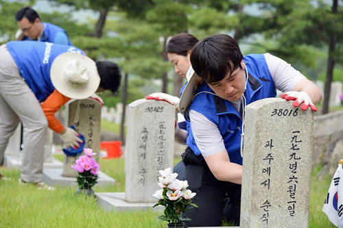 효성그룹이 국립서울현충원과 1사 1묘역 자매결연 협약을 체결했다고 18일 밝혔다.이날 협약 체결 행사에는 장형옥 효성나눔봉사단장(부사장)과 이선근 국립서울현충원장 및 효성나눔봉사단원 20명이 참석해 현충탑 참배, 결연묘역을 답사 및 묘역 단장 봉사활동을 하는 시간을 가졌다.효성은 이번 협약에 따라 제 9묘역(총 627위)의 비석 닦기, 묘역 내 잡초제거 등의 환경정화 및 묘역 단장 활동과 한 송이 헌화 운동 등을 매년 현충일과 국군의 날에 연 2회씩 전개해 나갈 예정이다.장형옥 효성나눔봉사단장(부사장)은 "효성은 창업주인 故 조홍제 선대 회장이 학창시절 6.10 만세운동을 주도하여 투옥되는 등 일찍이 나라사랑에 앞장서온 기업이었다"며 "순국선열과 호국영령들이 안장돼 있는 국립서울현충원의 묘역 관리에 동참하게 돼 매우 뜻 깊게 생각한다"고 밝혔다.한편 효성은 2012년부터 육군과 공동으로 '나라사랑 보금자리' 운동을 진행해 6?25와 월남참전 국가유공자의 주거환경을 개선하고 있으며, 올해에는 후원금을 1억원으로 늘렸다. 또한 효성의 미국법인은 현지에서 6.25 참전용사 초청행사를 후원하는 등 국내외에서 나라를 위해 봉사한 군인들의 업적을 기리고 지원하는 활동을 활발히 펼치고 있다.