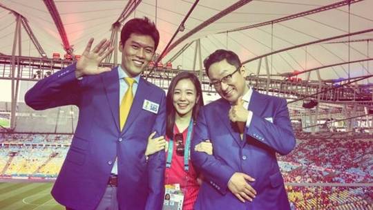 장예원 SBS 아나운서가 브라질 여신으로 등극했다.장예원 아나운서는 19일 자신의 트위터에 "오늘따라 더 멋진 김서방과 첼지현"이라는 글과 함께 한 장의 사진을 올렸다.공개된 사진 속 장예원은 스페인 유니폼을 입고 김일중 아나운서와 장지현 해설위원 사이에 서서 이들의 팔짱을 낀 채 카메라를 향해 함박미소를 짓고 있다.앞서 장예원은 19일 오전 4시(한국시각) 브라질 리우 데 자네이루의 에스타디오 두 마라카낭에서 열린 '2014 브라질 월드컵' 조별리그 B조 2차전 스페인 칠레의 경기를 관람하던 중 SBS 중계 화면에 포착돼 눈길을 끌었다.스페인 팀 유니폼을 입고 스페인을 응원하던 장예원은 박수를 치다 경기장 전광판에 자신의 얼굴이 나오는 것을 알고 카메라를 향해 환하게 웃으며 청순한 매력을 과시했다.한편, 장예원 아나운서는 현재 브라질 월드컵 중계를 위해 브라질에서 머물고 있다.[장예원 스페인 칠레 인증샷, 사진=장예원 트위터]