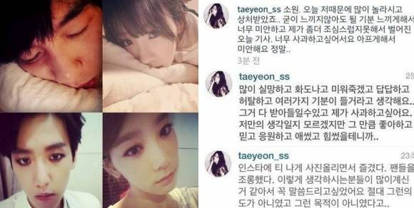 소녀시대 태연이 엑소 백현과 열애 인정 후 심경을 고백했다.태연은 19일 밤 자신의 인스타그램에 "많이 실망하고 화도 나고 미워죽겠고 답답하고 허탈하고 여러가지 기분이 들거라고 생각해요. 그거 다 받아들일 수 있고 제가 사과하고 싶어요. 저만의 생각일지 모르겠지만 그 만큼 좋아하고 믿고 응원하고 애썼고 힘썼을테니까.."라고 팬들에 대한 미안함을 드러냈다.태연은 앞서 "소원. 오늘 저 때문에 많이 놀라시고 상처받았죠. 굳이 느끼지않아도 될 기분 느끼게해서 너무 미안하고 제가 조금 더 조심스럽지 못해서 벌어진 오늘 기사. 너무 사과하고 싶어서요. 아프게 해서 미안해요. 정말"이라는 글을 게재했다.태연 심경 고백을 접한 네티즌들은 "태연 심경 고백 어떤 마음인지 알겠다", "아이돌은 연애도 못하나.. 축하해주자!", "태연 심경 고백 얼마나 고민했을까", "태연 백현 열애 배신감 들지만 그래도 응원할게요", "태연 심경 고백 힘내길~" 등의 다양한 반응을 보였다.지난 19일 연예매체 디스패치는 태연과 백현이 자동차 안에서 심야 데이트를 즐기는 파파라치 사진을 공개하며 두 사람이 4개월째 열애 중이라고 밝혔다.이에 태연 백현의 소속사 SM엔터테인먼트는 "두 사람이 친한 선후배 사이로 지내다 최근 들어 호감을 갖기 시작한 단계"라며 열애 사실을 공식 인정했다.[태연 심경 고백, 사진=태연 백현 인스타그램]