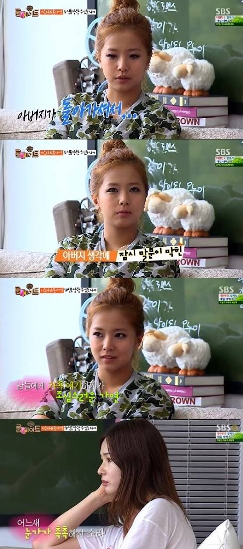 '룸메이트' 송가연이 아픈 가족사를 고백했다.송가연은 22일 방송된 SBS '일요일이 좋다-룸메이트'에서 이소라와 이야기를 나누던 중 자신의 가족사를 털어놓으며 한층 가까워지는 모습을 보였다.이날 '룸메이트' 송가연은 "어렸을 때부터 혼자 살았느냐. 부모님은 자주 오시느냐"는 이소라의 질문에 "어머니랑 남동생이 가족의 전부다. 아버지가 고등학교 1학년 돌아가졌다"고 답했다.아버지 생각에 잠시 말문을 막힌 송가연은 "솔직히 말하면 내게 가족이라는 개념이 분명 있긴 하겠지만 같이 운동하는 오빠들이 더 가족같다. 위급한 순간에는 늘 오빠들이 있어줬다"고 밝혔다.이어 "이렇게 말하면 나빠 보일 수 있지만 어버이날에도 감독님이나 대표님부터 생각나지 부모님이 먼저 생각나진 않는다"고 솔직하게 말했다.'룸메이트' 송가연의 진심어린 고백에 이소라는 눈시울을 붉히며 "네가 말하는데 마음이 느껴진다"며 "언니도 스무살 때 아버지가 갑자기 돌아가셨다. 그래서 네가 이렇게 어른 같구나. 대견하다"고 기특해했다.[룸메이트 송가연, 사진=SBS '룸메이트' 방송 캡처]