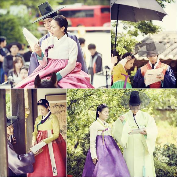이번에 공개된 대본 커플샷은 카메라 밖에서도 늘 함께하는 연인 같은 모습을 포착해냈다. 내리쬐는 햇볕을 피해 우산 아래서도, 함께 탄 말 위에서도, 아름다운 정원에서도 이준기와 남상미는 늘 함께 대본을 보고 연습하며 연기에 대한 의견을 나눈다.