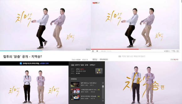 DJ 컬투의 치맥송과 닭춤이 뜨거운 반응을 얻고 있다.공개된 광고촬영 메이킹 영상 속 컬투는 흥이 나는 리듬과 익살스런 닭춤을 추고 있어 보는 이들의 웃음을 자아냈다.컬투 소속사는 "월드컵 시즌을 맞아 누구나 쉽게 따라 할 수 있는 율동으로 시차로 인한 졸림을 극복하고 치킨과 맥주를 통해 배고픔과 상쾌함을 함께 즐기자는 콘셉트"이라고 전했다.컬투 치맥송 영상을 본 네티즌들은 "컬추 치맥송 라디오와 TV에서 보던 입담보다 더 웃기다", "컬투 치맥송 역시 개그맨이다", "컬투 치맥송 몸으로 웃겼다", "치맥이 당긴다" 등의 반응을 보였다.[컬투 치맥송, 사진=JG엔터테인먼트]