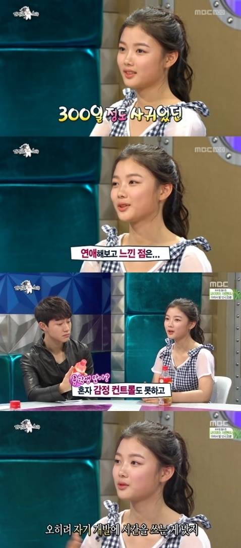 아역배우 김유정이 연애경험을 솔직하게 고백했다.지난 25일 방송된 MBC '황금어장-라디오스타'에는 '어른들은 몰라요' 특집으로 곽동연, 김유정, 노태엽, 김동현이 출연해 재치있는 입담을 뽐냈다.이날 MC들이 "연애는 스무살 넘어 하겠다고 했는데 100일 넘게 만난 남자친구가 있었다고 하더라"고 언급하자 김유정은 "300일 정도 만난 친구가 있었다"고 털어놨다.김유정은 "연애를 해보고 느낀 점은 우리 나이에는 아직 어린 것 같다"며 "혼자 감정 콘트롤도 못하고, 맞다고 생각해도 그렇게 못한다"고 설명했다.이어 "차라리 자기 개발에 시간을 쓰는 게 낫다. 연애는 커서 하는 게 맞다고 생각한다"고 소신있게 말했다.[김유정 연애 고백, 사진=MBC '라디오스타' 방송 캡처]