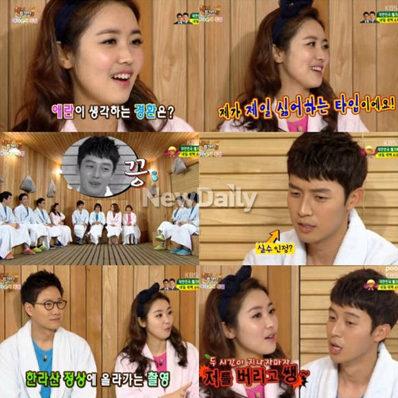 KBS 가애란 아나운서가 개그맨 허경환에게 돌직구를 날렸다.지난 26일 방송된 KBS 2TV '해피투게더 시즌3'에서는 '아나운서 특집'으로 조우종, 도경완, 가애란, 조항리가 출연해 유쾌한 입담을 뽐냈다.가애란 아나운서는 과거 KBS2 '맘마미아'에서 허경환과 핑크빛 분위기를 형성해 화제를 모은 바 있다. 이날 가애란 아나운서는 허경환에 대해 어떻게 생각하냐는 MC 유재석의 질문에 "제가 제일 싫어하는 타입이다"고 딱 잘라 거절했다.가애란은 "처음 만났던 기억이 너무 안 좋았다. 제주도 한라산 꼭대기에서 방송을 같이 했는데, 처음 두 시간은 세상 그렇게 자상한 남자도 없고, 진지한 남자가 없었다. 산을 반쯤 오르다 내가 몸이 안 좋아졌다. 어느 순간 나를 버리고 가버렸다"고 이유를 설명했다.이에 허경환은 "한라산 백록담 올라가는데 왕복 8시간이다. 처음에 아나운서라고 하니까 신기하고 예뻐서 설레였다. 산에 올라가는데 두 시간 정도는 괜찮았다"고 당시를 회상했다.이어 "어느 순간 가애란 아나운서 화장도 지워지고 처음 봤던 그분이 아니었다"며 "너무 힘들었다. 아나운서고 뭐고 내가 살아야겠다는 생각이 들어서 올라갔다"고 변명했다.허경환의 말에 가애란 아나운서는 "그때 깨달았다. 이 남자는 삶이 힘들면 날 버리겠구나 생각했다"고 밝혀 웃음을 자아냈다.[가애란 허경환 돌직구, 사진=KBS2 '해피투게더' 방송 캡처]