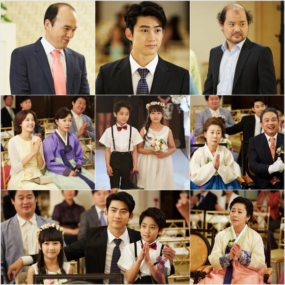 그런가하면 화동으로 변신한 '귀요미' 쌍둥이 최권수와 홍화리는 깜찍한 정장과 드레스를 입고 등장, 흐뭇한 미소를 자아내게 했다. 극중 아버지로 나오는 옥택연과 똑같은 헤어스타일을 한 최권수는 앙증맞은 멜빵에 알록달록한 보타이로 개구쟁이 이미지를 완성했고, 미니부케와 화관까지 쓴 홍화리는 화이트 드레스로 귀여운 '꽃소녀'의 미모를 발산했다.