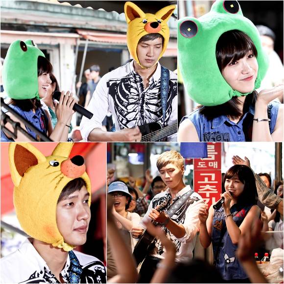 '트로트의 연인' 지현우 정은지가 재래시장에 떴다.1일 방송되는 KBS 2TV 월화드라마 '트로트의 연인'(극본 오선형 강윤경, 연출 이재상 이은진)에서 지현우(장준현 역)와 정은지(최춘희 역)가 첫 합동공연을 선보인다.공개된 사진 속 여우 탈을 쓰고 있는 지현우와 개구리 탈을 쓰고 있는 정은지가 재래시장에서 공연을 펼치고 있는 모습이 담겨있어 호기심을 자극한다.특히, 전날 3회 말미에서 장준현(지현우)이 최춘희(정은지)에게 무릎을 꿇고 사과하며 자신을 믿고 따라와 달라고 애원했던 만큼 샤인스타와의 계약과 두 사람의 관계가 어떻게 진행되고 있는 것인지 궁금증을 증폭시키고 있는 상황.실제 촬영 현장에서는 지현우의 뛰어난 기타연주와 정은지의 매력적인 트로트가 환상적인 앙상블을 이루어 스태프와 보조 출연자들 뿐만 아니라 지나가던 시민들의 이목까지 단번에 사로잡을 정도였다고. 두 사람은 촬영장 전체를 트로트 가수의 콘서트장처럼 뜨겁게 달궜다는 후문이다.드라마 '트로트의 연인'의 관계자는 "지현우와 정은지는 음악적으로나 연기적으로 완벽한 호흡과 케미를 선보이는 배우들"이라며 "두 사람이 처음으로 함께 선보일 공연에 많은 분들이 진심어린 호응을 보여준 만큼 드라마를 통해서 유감없이 드러날 두 사람의 멋진 모습을 기대해 달라"고 전했다.지현우와 정은지의 사랑스러운 커플공연을 만나 볼 수 있는 KBS2 월화드라마 '트로트의 연인' 4회는 1일 밤 10시 방송된다.['트로트의 연인' 지현우 정은지, 사진=제이에스픽쳐스]