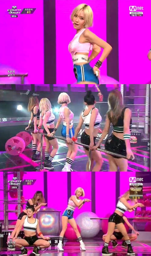 티아라 효민이 섹시한 안무로 화려한 솔로 신고식을 마쳤다.효민은 지난 3일 생방송으로 진행된 Mnet '엠카운트다운'에서 솔로앨범 수록곡 '척했어'와 타이틀곡 '나이스바디(NICE BODY)' 무대를 꾸몄다.먼저 '척했어' 무대에서는 블랙 시스루 하의에 등라인이 드러나는 상의를 입고 절제된 섹시미를 뽐냈다.이어 '나이스 바디'에서는 늘씬한 몸매가 강조된 탱크톱에 핫팬츠를 입고 래퍼 로꼬의 지원사격 속에 아찔한 퍼포먼스를 선보였다. 효민은 줄자, 스텝바 등의 소품을 이용해 엉덩이를 튕기거나 자리에서 앉아 쩍벌녀 포즈를 취하는 화끈한 안무로 눈길을 사로잡았다.효민 '나이스바디'는 작곡가 용감한형제의 곡으로 그루비한 오르간 사운드고 클래비시 소스가 조화를 이룬 슬로우 템포 힙합곡이다. 남자에게 잘 보이고 싶은 여자의 마음을 가사로 풀어냈다.효민 '나이스바디' 무대를 접한 네티즌들은 "효민 나이스바디 인정!", "나이스바디 때문에 4kg을 감량했다더니 몸매 완벽해", "효민 나이스바디 몸매 최고!", "효민 각선미가 나이스!", "효민 나이스바디 눈을 어디에 둬야할 지.." 등의 반응을 보였다.[효민 나이스바디, 사진=Mnet '엠카운트다운' 방송 캡처]